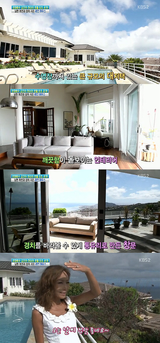 이어 "유리창이 작았는데 경치를 위해 인테리어를 다시 했다. 거의 다시 지은 거나 다름없다. 그래서 대부분의 벽면을 다 창문으로 바꾸고 2층을 올렸다"며 "집에 있는 가구들은 대부분 남편 케빈이 직접 종류부터 재료까지 다 골라 우리 부부의 취향이 들어간 것이다"고 말하며 행복한 결혼생활을 자랑했다.