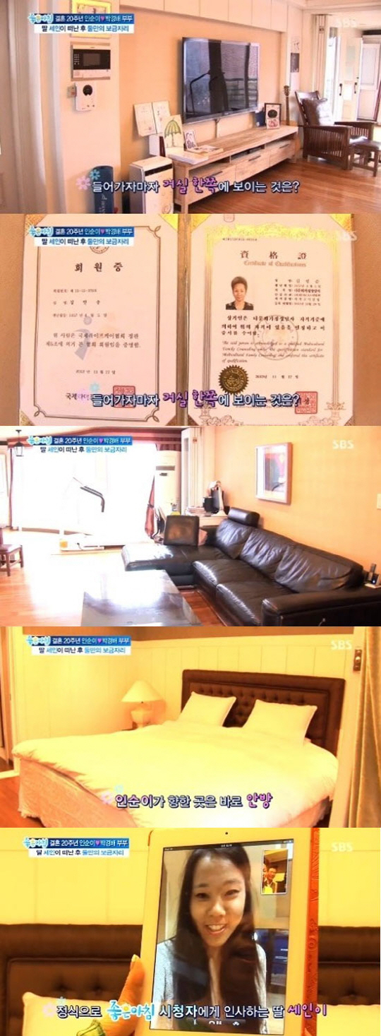 이에 인순이는 "다문화 가정을 위한 학교를 만들겠다고 했더니 우리 딸이 아무 것도 모르는 엄마 걱정된다고 하더라"며 "그래서 무조건 책 사서 달달 외워 자격증을 땄다"고 자랑했다. 그러자 옆에 있던 박경배는 분주히 인순이가 공부한 책을 찾아 보여주며 그간의 노력을 증명해 보이는 알콩달콩함을 자랑했다.