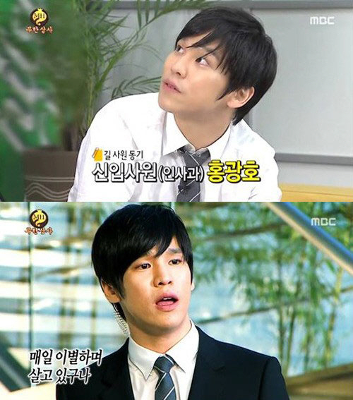 이날 방송에서 홍광호는 점심을 먹고 돌아온 정준하에게 잔돈을 빌려주는 신입사원으로 등장했다. 정준하는 홍광호가 신입사원임을 알고는 앞으로 회사 생활을 열심히 하라며 격려했고, 그는 멋쩍은 표정을 지어보였다.