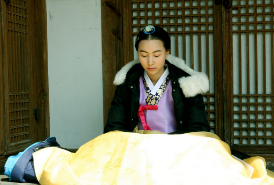 사진 속 김하은은 화사한 한복을 입고 고운 자태를 뽐내는 영락없는 양반댁 규수다. 머리를 길게 늘어뜨린 것으로 봐서 세자빈에 즉위하기 전에 촬영된 사진이다.