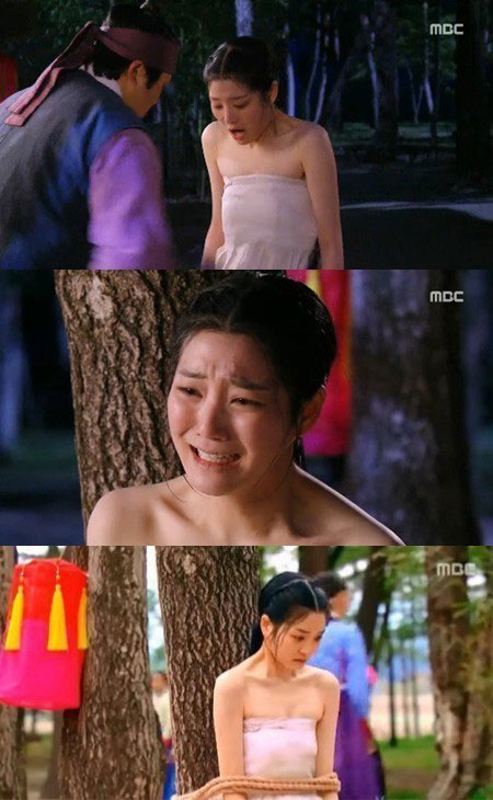 배우 이유비가 '구가의 서'에서 과감한 노출과 오열 연기를 선보여 시청자들의 눈길을 끌었다.