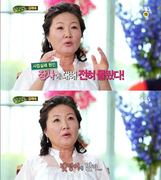 결국 김해숙은 "내가 벌인 일이니까 당연히 내가 책임을 져야 했고, 그땐 남편도 병으로 일찍 죽고 아무도 없었다"며 빚을 갚기 위해 지방 행사 등 각종 행사에 뛰어들었다고 전했다. 그녀는 "지금은 웃으면서 말하지만 당시에는 '내가 왜 여기까지 왔을까'하는 생각에 차 안에서 하염없이 울기도 했다"고 전해 안타까움을 자아냈다.