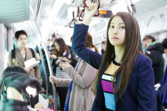 지하철 안에서 찍힌 카라 박규리의 사진이 공개 돼 화제다.
