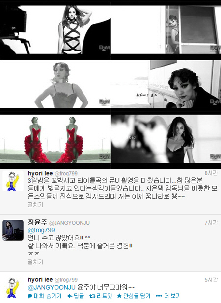 또한 이효리의 글에 모델 장윤주는 "언니 수고 많았어요!! 잘 나와서 기뻐요. 덕분에 즐거운 경험!!"이라는 답글을 남겨 이효리의 뮤직비디오 촬영에 참여했음을 알렸다.