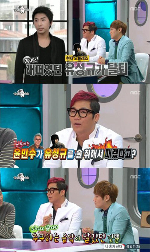 3인조 그룹이었던 바이브는 지난 2005년 래퍼 유성규의 탈퇴 이후 불화설에 휩싸인 바 있다. 이에 대해 MC들은 "윤민수가 유성규를 술에 취해 때렸다는 소문이 있다"며 바이브의 불화설을 언급했고, 윤민수는 "사실 유성규가 내가 아닌 류재현과 싸운 적은 있다"고 당시를 회상했다.