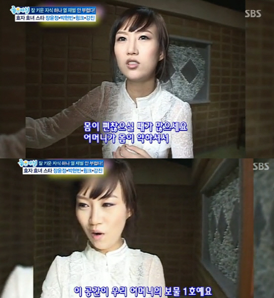 가수 장윤정의 어머니가 10년간 모은 재산을 아들을 위해 탕진했다는 소식이 전해진 가운데 과거 장윤정의 어머니에 대한 효심 발언이 눈길을 끌고 있다.