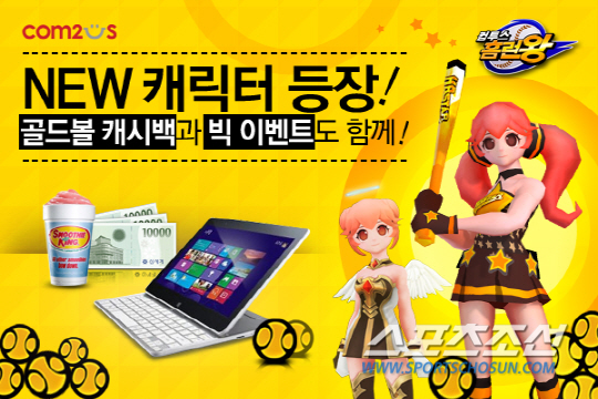컴투스는 이번 업데이트를 기념해 12일까지 신규 캐릭터를 구매하는 유저를 대상으로 캐릭터 가격 50% 상당의 1만2000 '골드볼'을 증정하는 캐시백 혜택을 제공한다. 같은 기간 동안 친구 초대 이벤트를 진행해 10명, 20명, 30명 친구를 초대하는 참가자 전원에게 각각 1000, 3000, 1만 '골드볼'아이템을 선물하고, 초대 인원 단위에 해당하는 경품 LG탭북, 백화점 상품권, 스무디킹 기프티콘 등을 추첨을 통해 증정한다.