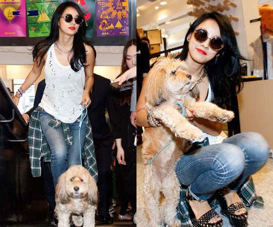 가수 이효리가 자신의 반려견 순심이와 함께 청담동에 등장해 화제다.