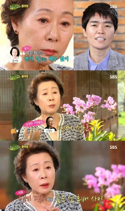 노희경은 "예전에 '우리가 정말 사랑했을까'라는 작품을 찍을 때 나문희가 사투리를 어색해했다"면서 "그런데 윤여정이 후배들 있는 자리에서 큰소리로 '언니 연기 이상해'라고 독설을 했다. 이에 나문희가 눈물이 글썽해서 나갔다"고 일화를 소개해 윤여정을 당황케 했다.