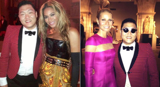 이는 싸이가 메트로폴리탄 갈라 멧볼 2013 레드카펫 행사에 참여하며 찍은 사진으로, 싸이는 이날 기네스 팰트로 외에도 비욘세를 만나 다정하게 사진을 찍기도 했다. 앞서 싸이는 자신의 콘서트에서 비욘세를 패러디한 싸욘세로 등장해 '싱글 레이디' 퍼포먼스를 펼쳐 세계적으로 뜨거운 관심을 받은 바 있다.