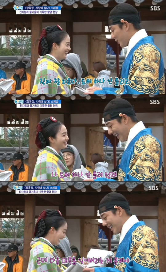 유아인은 김태희와 대사를 맞춰 보던 중 김태희에게 "진짜 잘 외운다. 토시 하나 안 틀리고"라며 김태희의 암기 실력을 극찬했다. 이를 들은 김태희는 활짝 웃으며 "나 토시 하나 안틀려, 원래"라며 자신감 넘치는 모습을 보였다. 그러나 김태희는 "근데 다음 대목을 잊어버리는 게 문제야"라고 말해 촬영장 분위기를 화기애애하게 만들었다.