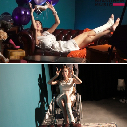 이 사진은 브랜뉴뮤직의 래퍼 스윙스의 신곡 뮤직비디오 촬영장에서 찍힌 사진으로 이날 NS 윤지는 다양한 컨셉트들을 프로답게 소화해 스태프들의 찬사를 받았다.