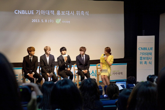 씨엔블루는 8일 오전 11시 서울 서대문구 필름포럼에서 열린 국제구호단체 기아대책 홍보대사 위촉식에 참석, 위촉장을 전달 받고 교육사업 담당 홍보대사로서의 다짐을 밝혔다. 이 자리에는 씨엔블루 학교를 후원하고 있는 후원자들과 관계자들이 참석했다.