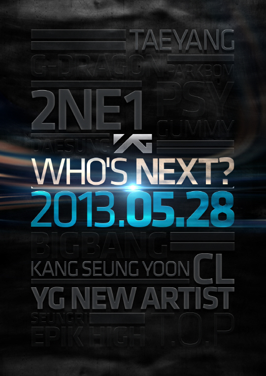 YG엔터테인먼트가 최근 소속 가수 중 5월 28일 컴백 혹은 데뷔를 예고한 가운데 그 인물이 2NE1, CL, 태양, 강승윤, 신인그룹으로 압축됐다.