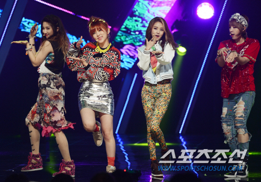 그룹 포미닛이 9일 오후 서울 상암동 CJ E&M 센터에서 열린 Mnet '엠카운트다운' 생방송에서 '이름이 뭐예요?'를 멋진 안무와 함께 부르고 있다. 멤버 현아가 과로로 병원에 입원하며 네 명이 무대에 오른 포미닛은 이날 조용필의 '바운스'를 제치고 1위를 차지했다. 정재근기자 cjg@sportschosun.com