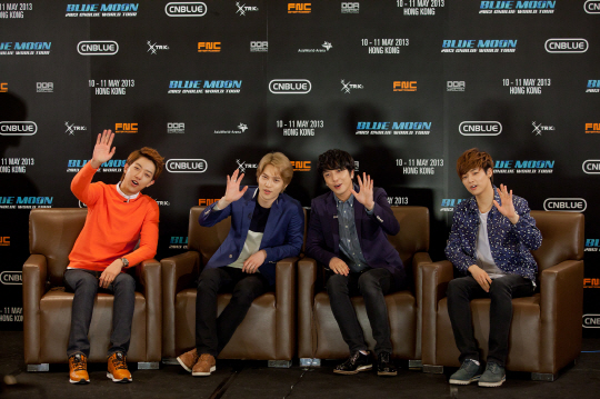 10일 오후 홍콩의 '아시아 월드 엑스포 아레나(Asia World Expo Arena)'에서 2013 월드투어 '블루문' 네 번째 공연을 앞두고 한국 취재진과 만난 씨엔블루는 "음악 때문에 씨엔블루를 좋아하는 팬들도 있고 드라마를 보고 팬이 되어 저희의 음악에 관심을 가지신 분들도 있더라"고 연기와 음악 활동의 시너지 효과를 설명했다.