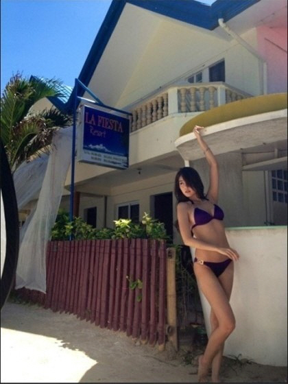 특히 비키니만 입고 아찔한 가슴라인을 과감히 공개하며, 글래머러스한 몸매를 그대로 노출해 네티즌들의 눈을 사로잡았다.