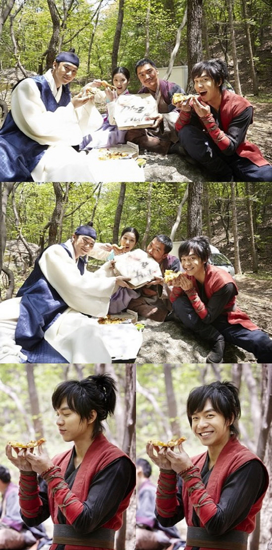 특히 배우들이 바쁜 일정 탓에 촬영 의상을 그대로 입은 채 피자를 먹는 모습이 이색적이다. 조선시대를 배경으로 한 드라마에 한복 의상을 입은 배우들이 피자를 먹고 있어 마치 타임슬립한 듯 분위기를 연출했으며, 장난스러운 표정으로 다함께 어우러진 배우들이 화기애애한 촬영장 분위기를 전하고 있다.