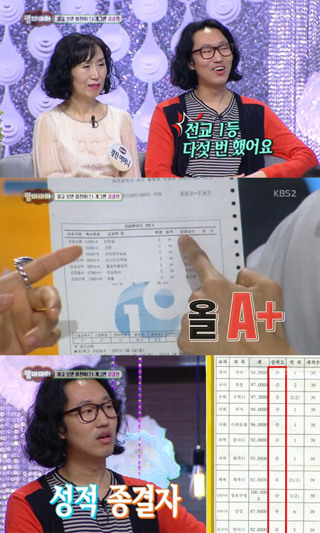 김경진은 초등학교 4학년 때 수학 과목 우수상, 고등학교 2학년 때 학업 우수상, 고등학교 3학년 때 '수'와 '우'로 가득한 성적표, 대학교 때는 올 A+의 성적표를 공개해 출연진들의 놀라움을 샀다.