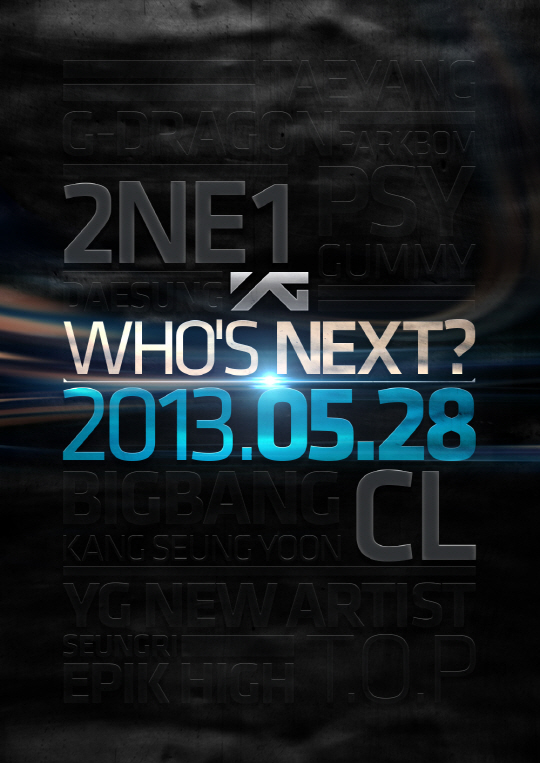 며칠 후에 다시 발표 된 2차 티저에서는 5팀으로 압축 하였고 드디어 13일 2NE1 과 CL의 이름만을 남겨둔 티저가 다시 공개 되었다.