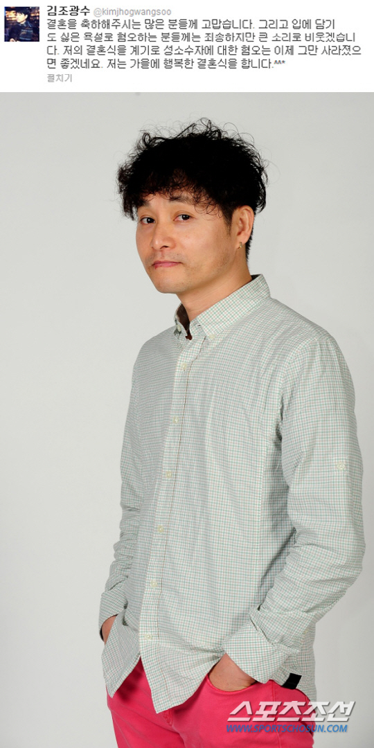 영화 제작자 겸 감독 김조광수가 결혼을 발표한 가운데, 본인의 트위터에 결혼 심경과 악플러들에게 일침을 가했다.
