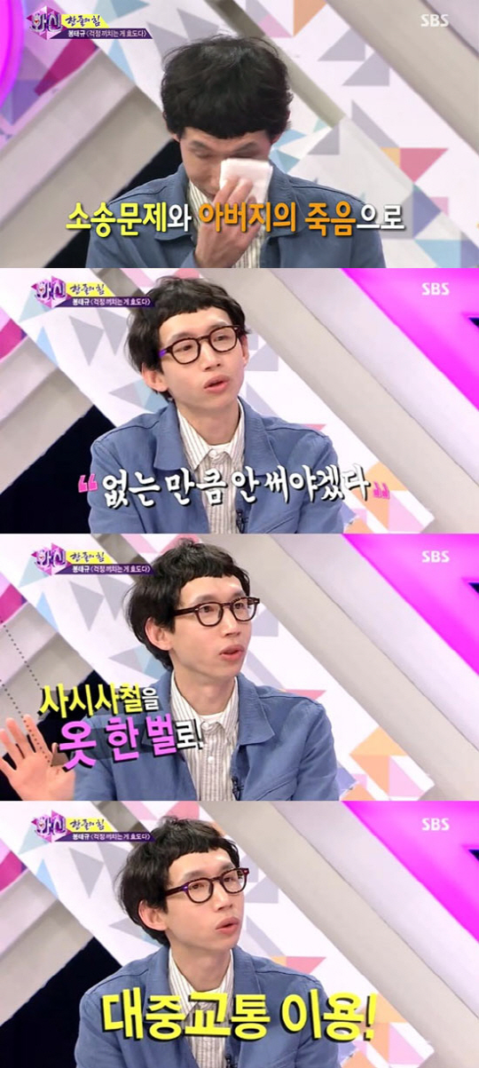 이에 MC 신동엽은 아버지의 실족사와 소송의 충격으로 2년 6개월 여간 활동을 하지 않은 봉태규에게 "수입이 없었을 텐데 그간 어떻게 살았냐"라고 질문을 던졌다.