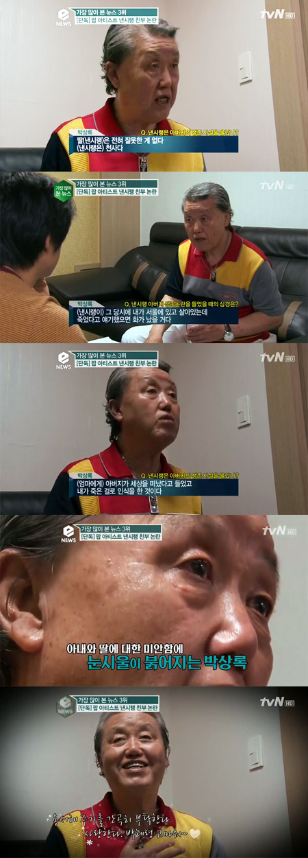 박상록은 "낸시랭은 전혀 잘못한 게 없다. 낸시랭은 천사"라며 "(엄마에게) 아버지가 세상을 떠났다고 들었고 내가 죽은 걸로 인식을 한 거다. 사회 경험이 없으니까 엄마 말이 진실이라고 믿었을 것이다"라며 딸에 대한 애틋한 마음을 드러냈다.