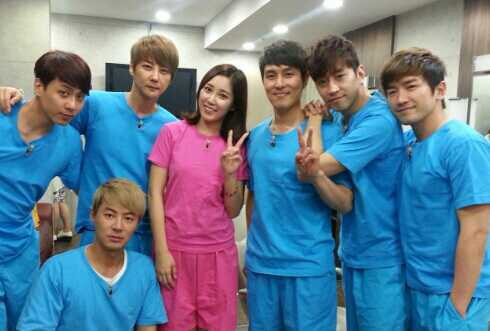 공개된 사진에는 KBS N 최희 아나운서와 신화가 카메라를 향해 미소를 지으며 촬영 중인 모습이다. 긴 머리를 찰랑거리는 최희는 '해피투게더'의 여자 공식 유니폼인 핑크색 찜질방 복장을 하고, 신화와의 만남이 즐거운 듯 손가락으로 브이자를 그리고 있다. 이어 신화 역시 '해피투게더' 남자 공식 유니폼인 하늘색 찜질방 복장을 하고 최희를 둘러싼 채 옹기종기 모여 보여 남신 포스를 발산했다. 최희 옆에 붙어서 촬영 중인 김동완은 여신과의 만남에 기쁜 듯 손가락으로 브이를 그리고 있으며, 전진은 최희 밑에 쭈그리고 앉아 무표정한 얼굴을 하고 있어 웃음을 선사했다.
