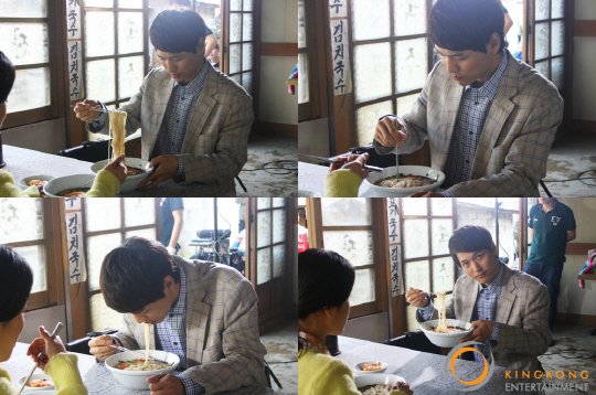 배우 지일주가 국수를 '흡입'하듯 먹고 있는 KBS 'TV소설 삼생이' 촬영장 비하인드 사진을 공개했다.