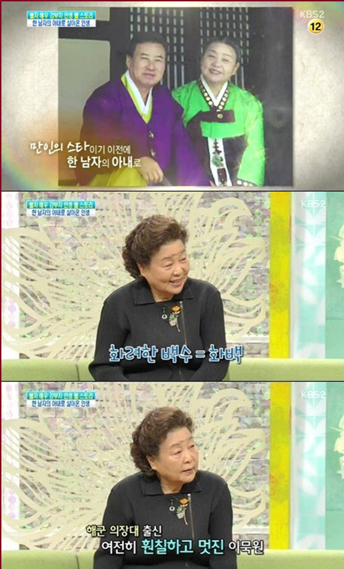 또한 강부자는 이묵원과 결혼을 한 이유에 대해 "인물이 좋아서 그런 건 아니다"며 "그 사람이 너무 가난했지만 어딘지 모르게 끌렸다. 나보다 3살 많은데 해군 의장대 출신이라 몸도 반듯했다"고 설명했다.