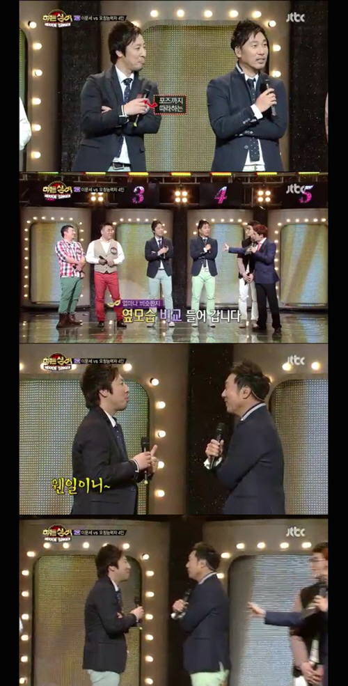 이문세 역시 "여태껏 나 닮은 사람들을 많이 봤지만 이렇게 외모가 똑같아서 깜짝 놀란 건 처음이다"라며 "의상뿐만 아니라 포즈도 똑같이 한다"며 놀라움을 감추지 못했다.