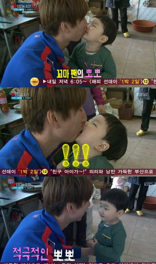 양상국은 꼬마 팬을 향해 "뽀뽀해줘"라고 하자 꼬마 팬은 잠시 주춤하더니 양상국에게 첫 번째 뽀뽀를 시도했다. 이후 두 번째 뽀뽀에서는 꼬마 친구가 갑자기 입을 벌리자 당황한 양상국은 "입을 벌렸어"라며 얼굴까지 벌게지는 등 적극적인 뽀뽀를 받아 웃음을 터트렸다.