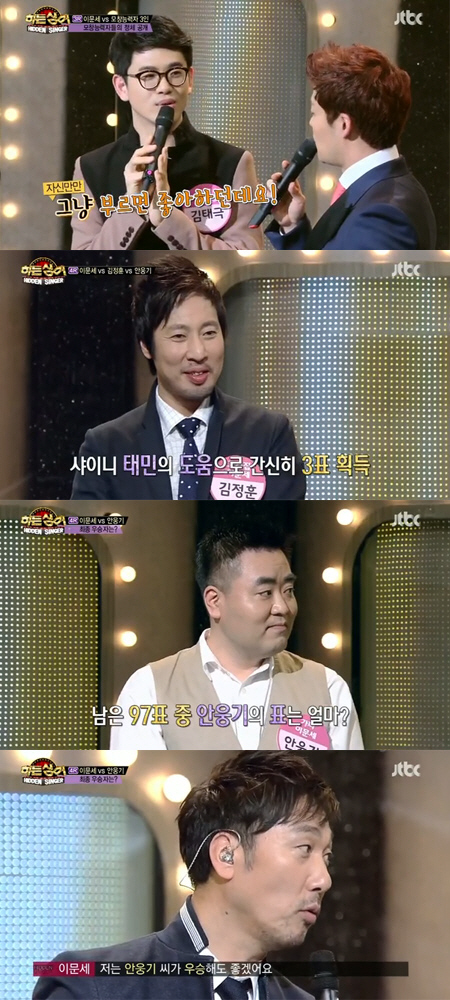 이날 방송에서는 이문세와 똑 닮은 외모 도플갱어 김정훈, 목소리 닮은꼴 안웅기, MBC '위대한 탄생2'(이하 위탄2) 출신 김태극이 시청자들의 관심을 끌었다.