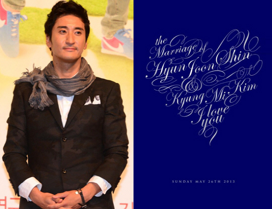 19일 신현준은 자신의 트위터에 "신기하네요. 정말 결혼 생각이 없었는데 그녀를 처음 봤을 때 '저 여자랑 결혼하겠구나' 라는 느낌이 강하게 들더라고요. wife도 똑같은 느낌 이였다고 하네요"라는 글과 함께 청첩장 사진을 공개했다.