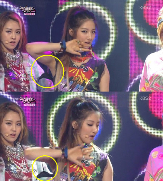 걸그룹 포미닛 남지현이 생방송 도중 속옷 끈이 풀려 아찔한 방송사고를 당할 뻔했다.