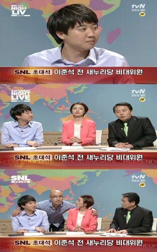 이준석은 지난 18일 방송된 tvN 'SNL코리아'에서 크루 최일구, 안영미와 함께 위켄드 업데이트 'SNL초대석'에 출연했다.