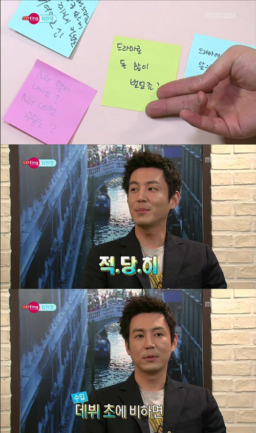 최원영은 이날 "MBC 주말드라마 '백년의 유산' 이후 돈을 많이 벌었느냐"는 질문에 "그냥 먹고 살 수 있는 정도다. 세끼 걱정은 안 한다"고 답했다.