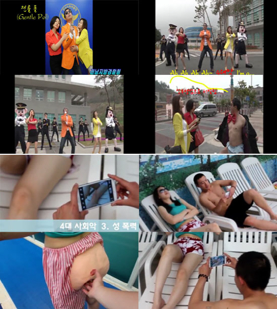 지난달 24일 전남지방경찰청은 '젠틀맨' 뮤직비디오를 패러디한 '젠틀폴'을 4대악 근절 메시지를 담아 제작해 무료 동영상 공유 사이트 유튜브에 등록했다.