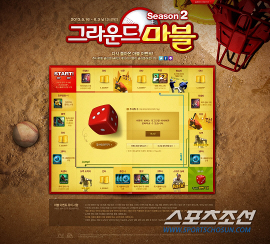 엔트리브소프트는 실사형 온라인 야구게임 'MVP 베이스볼 온라인'에서 보드게임 블루마블을 응용한 '그라운드 마블' 이벤트를 실시한다고 20일 밝혔다.