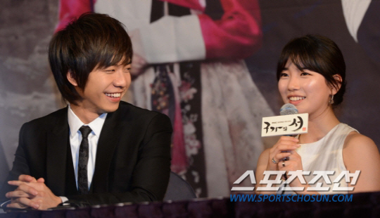 수지 이승기 / 사진=지난달 2일 MBC 새 월화드라마 '구가의 서' 제작발표회에서 주인공인 이승기와 배수지가 취재진의 질문에 답하고 있는 모습. 여의도=최문영 기자 deer@sportschosun.com /2013.04.02/