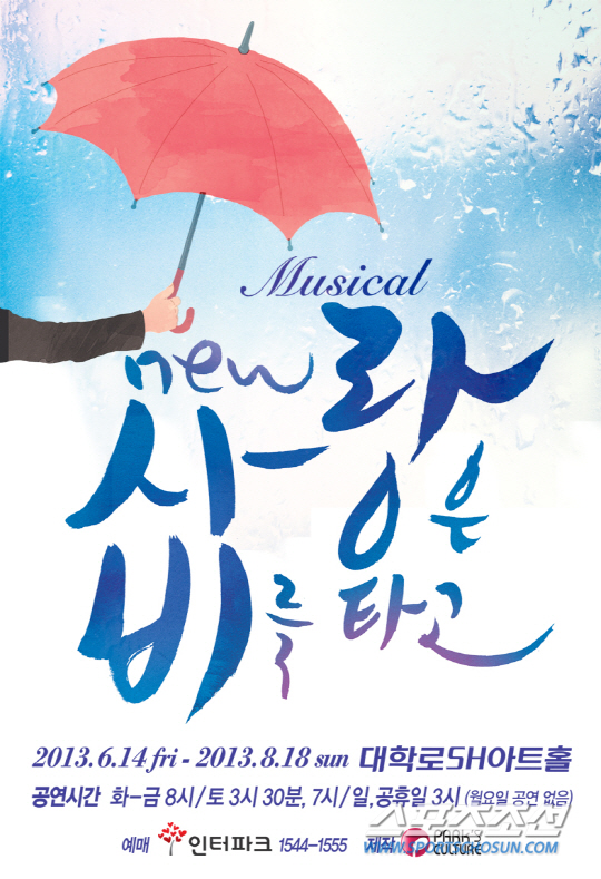 많은 사람들의 가슴 속에 남아있는 창작 뮤지컬 '사랑은 비를 타고'의 마지막 장면이다. 지난 1995년 초연돼 17년 간 관객의 사랑을 받으며 누적 관객 10만명을 돌파한 창작뮤지컬의 신화 '사랑은 비를 타고'가 'New 사랑은 비를 타고'로 다시 돌아온다. 오는 6월 14일부터 대학로 SH 아트홀 개막.