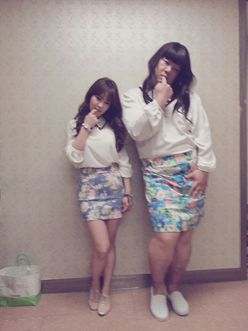 개그우먼 김지민이 개그맨 유민상과 함께 찍은 코믹 사진을 공개했다.