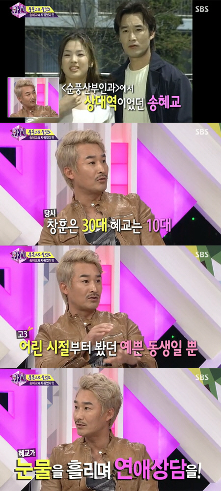 이창훈은 "송혜교와 '순풍 산부인과'에서 상대역이었는데 당시 송혜교는 고3이었고, 나는 30대였다"며 "원조교제라는 말까지 있었다"며 억울해했다.