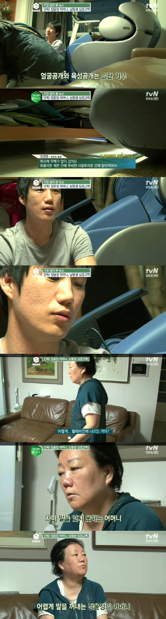 장윤정의 동생 장경영 씨는 23일 방송한 tvN 'E뉴스'에 출연해 "회사에 피해가 많이 갔다. 언론에 많이 노출돼 회사 신뢰도가 하락해 피해가 많다. 회사가 건실한 회사라는 것을 밝혀져야 제 명예회복에 필요할 듯하다"며 "장윤정에게 손해 끼친 일 없다. 누나가 생긴 빚이라고 하는 것은 자산 관리를 잘못했기 때문에 생긴것이다. 자산관리사는 문제가 없다고 했다"고 주장했다.