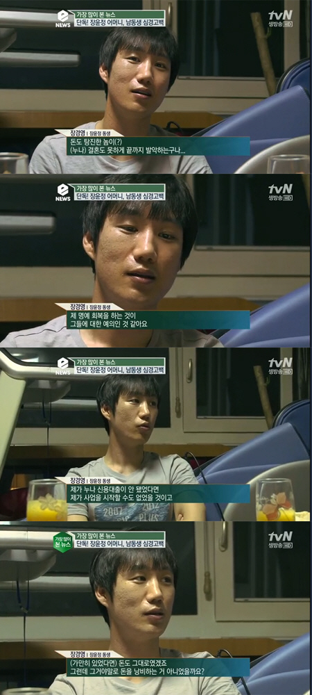 이날 장 씨는 누나에게 그동안 고마운 적이 많았냐는 질문에 "항상 고맙다. 내가 누나 신용대출이 안 됐었다면 사업을 시작할 수도 없었을 것이고, 누나가 고마우니까 지키려고 노력을 많이 했다"고 답했다.