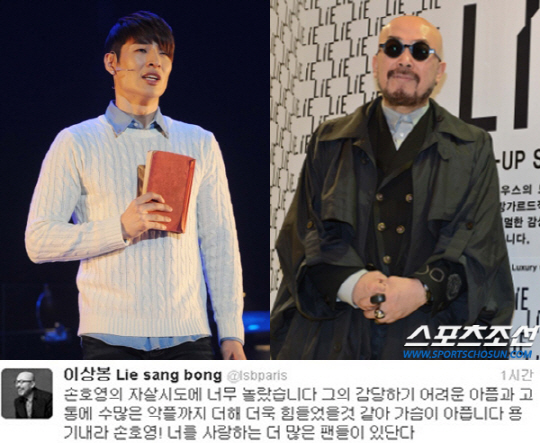 디자이너 이상봉이 자살을 기도한 가수 손호영에게 전하는 위로글을 남겼다.