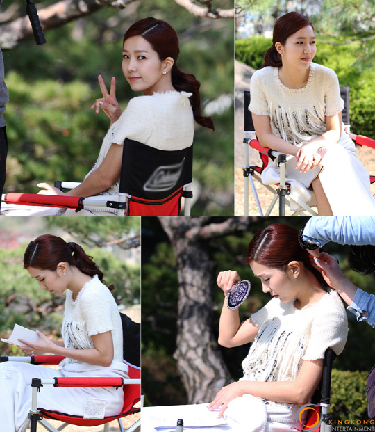 이날 공개된 사진 속 이진은 흰색 원피스에 레드 톤 헤어스타일로 세련된 매력을 과시하고 있으며, 카메라를 향해 부드러운 미소와 함께 브이를 짓고 있다. 또한 정원에 앉아 스태프와 함께 담소를 나누거나, 햇빛을 거울로 가려가면서 대본을 손에서 놓지 않는 연기 열정을 보이고 있다.
