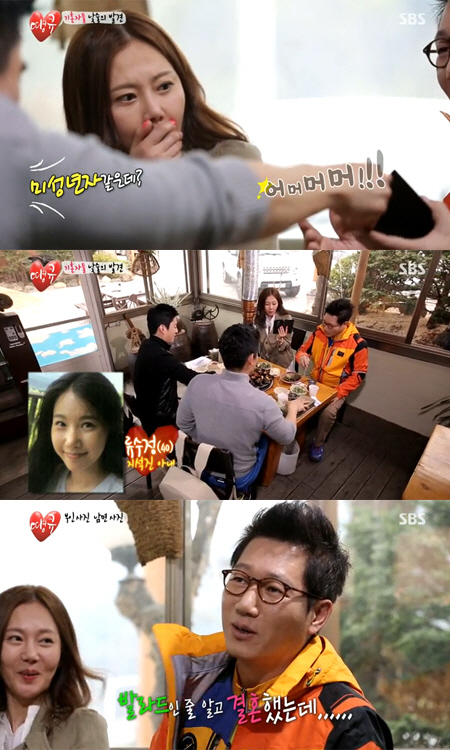 이에 차인표는 아내의 사진을 보여달라고 요구했고, 지석진은 "그냥 그렇다. 사진을 오래전에 찍고 잘 안 찍는다"며 꼼꼼하게 사진을 골라서 보여줬다.