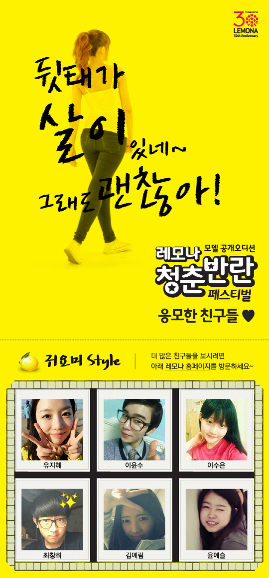 비타민C 명가(名家), 경남제약(대표 : 오창환)이 레모나 출시 30주년을 맞아 개최하는 '레모나 광고 모델 선발대회'가 모집을 시작한 지 2주 만에 2만여명을 돌파하며 온라인상에서 높은 인기를 얻고 있다. 30주년을 맞이해 기획된 '레모나 광고 모델 선발대회'는 5월6일부터 접수를 시작, 현재 약 2만여명이 지원을 했으며 5월31일까지 접수를 받는다. 이번 '레모나 광고 모델 선발대회'는 그동안 모델로 여성들만 뽑았던 기준을 남성까지로 확대했다. 또한 국내 연예인-모델 지망생은 물론 필리핀, 미국, 중국 등 전세계 모든 나라에서 참여가 가능하도록 기회를 넓혔다. 지원의 편의성을 위해 SNS 카카오톡을 활용해 기존과 전혀 다른 응모방식으로 간편하게 응모가 가능하도록 했다.