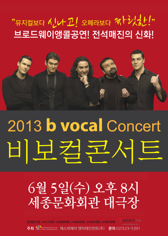 세계 정상급 아카펠라 그룹 '비보컬(b vocal)'이 오는 6월 5일 세종문화회관을 시작으로 김해, 울산, 창녕, 강릉 등에서 순회공연을 펼친다.